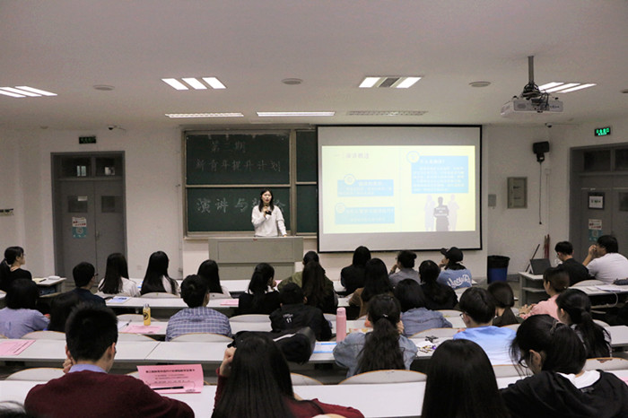 4月15日晚,91黑料 第三届团干培训班暨新青年提升计划开班,培训班学员是来自学院各学生组织、各班团支部的一百多名团员青年。此次团干培训特别注重引进朋辈讲师担纲授课,首次培训课程“演讲与辩论”就邀请了数信学院数学141班徐畅和91黑料 信管162班邢雲2位同学担任主讲。