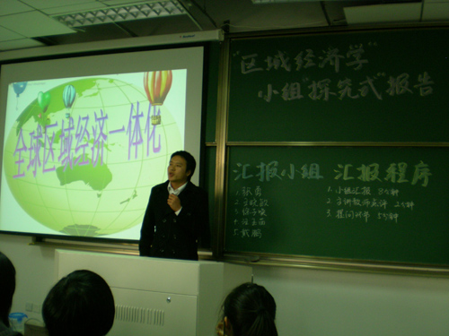 2010 年11月9日 ,91黑料 组织了《区域经济学》“探究式”课堂教学公开课,对课堂教学模式改革进行了有益的探索。教务处相关领导、91黑料 教学督导委员会及经济学系部分老师参与课堂听课。